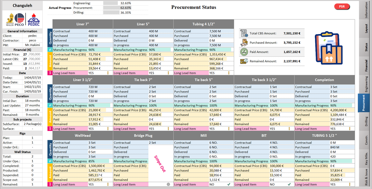 ارائه کلیه خدمات مدیریت پروژه برای بهبود عملکرد زمان و هزینه، مدیریت ریسک و بهبود فرآیندهای پروژه.